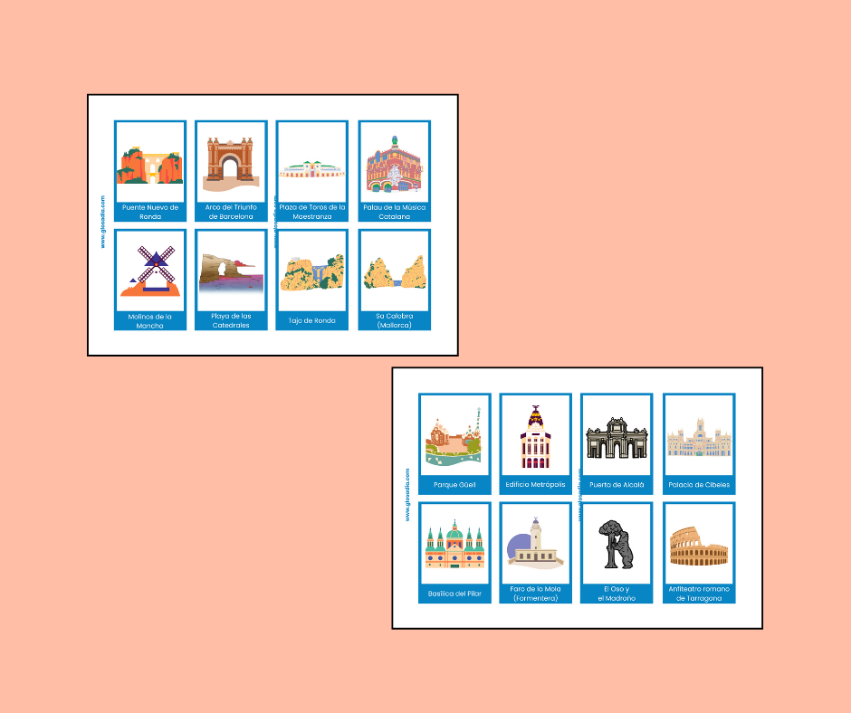 - Si vas a utilizarlas como un juego de tabú (pese a no contener las palabras prohibidas), es importante que tus alumnos conozcan muy bien los monumentos de España o que incluso vivan en el país.