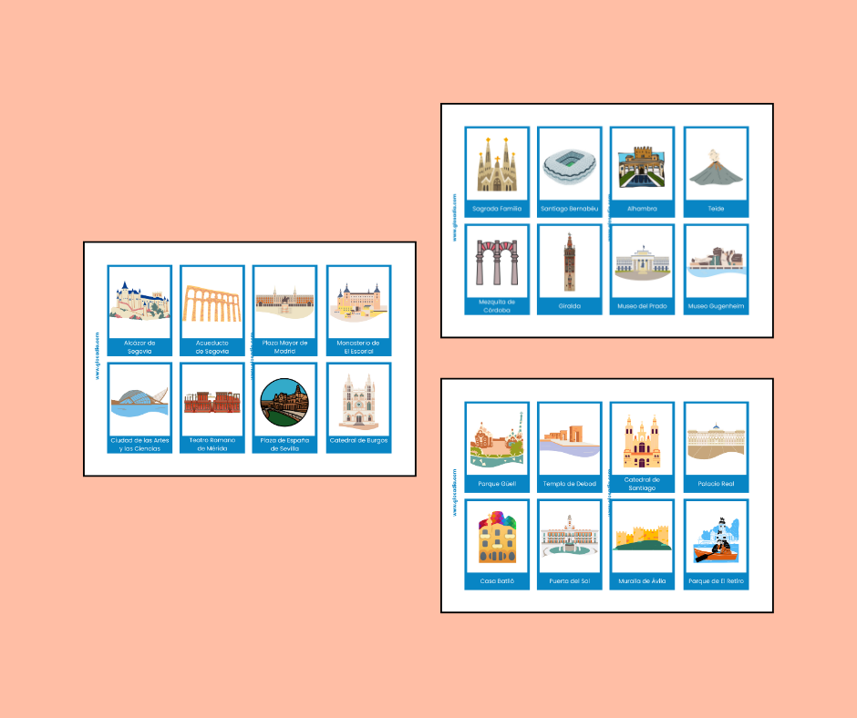 Todo depende de los juegos en los que quieras usar estas tarjetas de conversación con atracciones turísticas españolas.